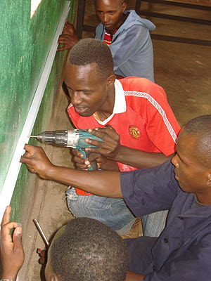 Before the installation was even complete, word was out and the Welwel students (in blue sweaters) were in the computer lab using the computers: