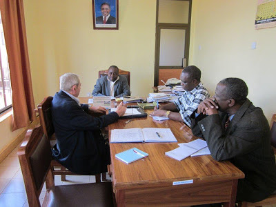 The photo below shows our meeting with Messrs. Berege, Mbwambo and Marisham, the Karatu District Executive Director, District Education Officer and Assistant Education Officer respectfully. Mr. Marisham advised the Executive Director to accept Mr. Finger’s Rotary proposal and to give him his requested letter, which he did. The next day I picked up the signed letter.