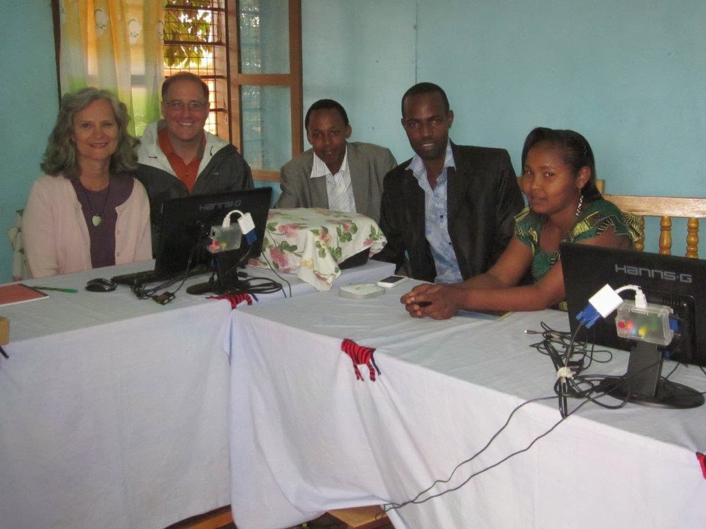 On Monday November 12 before our meeting with district officials, Mr. Finger and his companion, Eileen Velen, and I also visited Welwel school. Below Mr. Finger is watching a Khan Academy video from RACHEL on Moles and Avogadro Numbers. There are more than one kind of moles 🙂 this one has something to do with chemistry. Mr. Finger is a highly respected chemist.