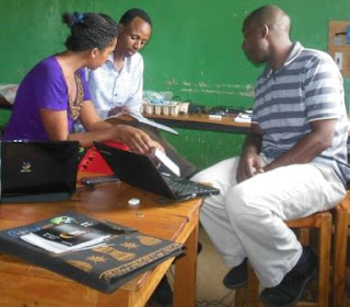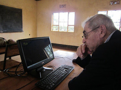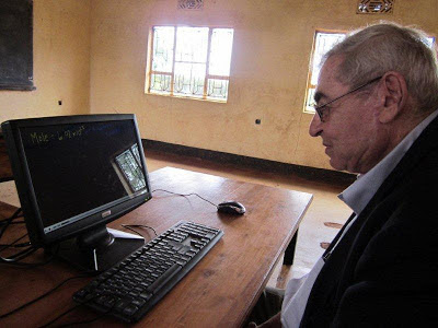 On Monday November 12 before our meeting with district officials, Mr. Finger and his companion, Eileen Velen, and I also visited Welwel school. Below Mr. Finger is watching a Khan Academy video from RACHEL on Moles and Avogadro Numbers. There are more than one kind of moles 🙂 this one has something to do with chemistry. Mr. Finger is a highly respected chemist.