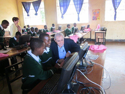 Mr. Finger, Eileen and I also visited Banjika Secondary School (see photo below). Milt and Eileen were somewhat surprised to see how inexperienced the students were with computers. For those of us from more developed countries it is hard to imagine that there are people in this world who have never even seen a computer. These beginning students were learning how to hold a mouse, point, click….think back to when you were first introduced to a computer…