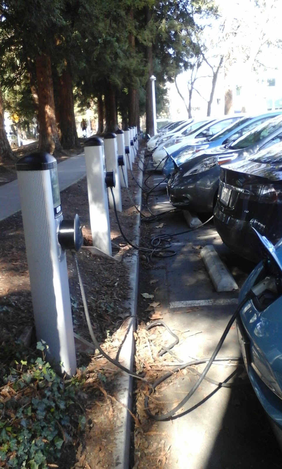 Catching my breath in the parking lot afterwards, waiting for my Uber to return me to San Fran. Absolutely thrilled to see this line of charging stations in the Campus parking lot. So very cool!