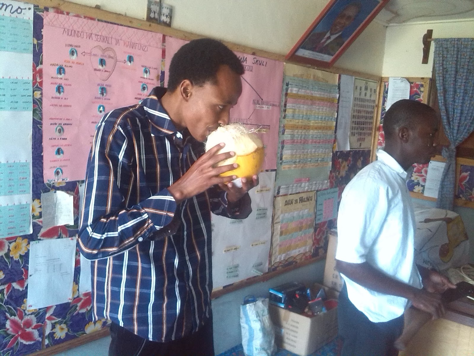 | Ministry Officers received coconuts from students at Head of School’s office during the visit. |